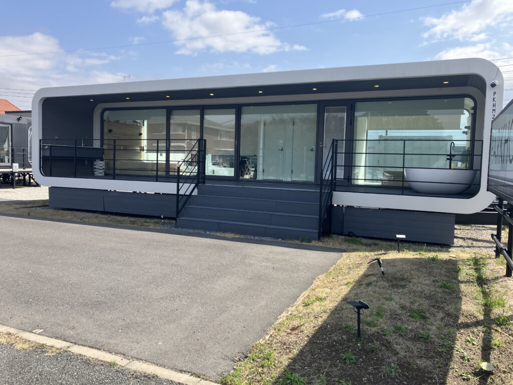 木更津には、パークラウンド12m(グランピング仕様)と新製品モデルP11mを展示しております。